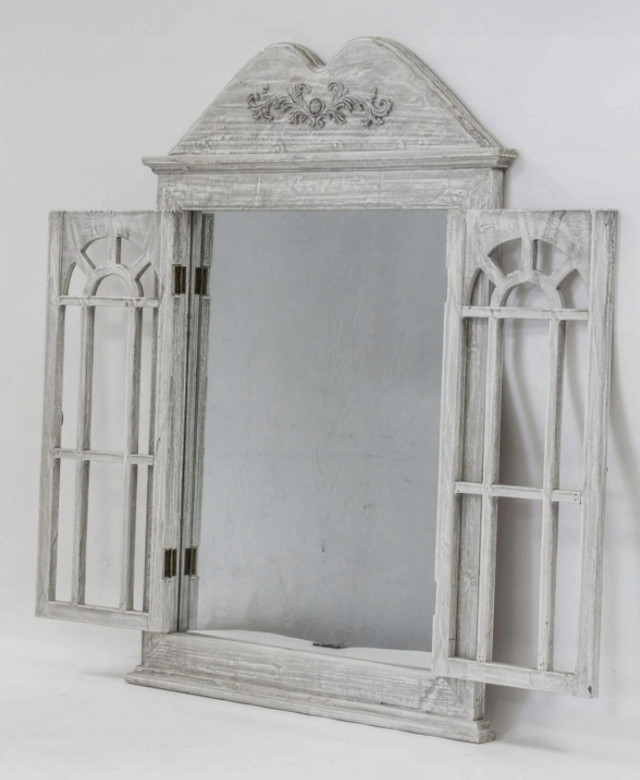 - Дзеркало в дерев'яній рамі, імітація потертого вікна зі віконницями