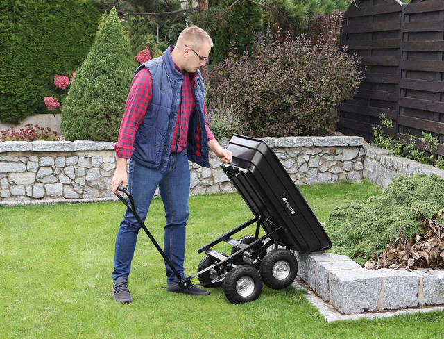 Практичная универсальная тележка, ее можно использовать как для развлечения, так и для работы в своем саду или дворе - она сочетает в себе три функции: тележка самосвал, прицеп и тачка.