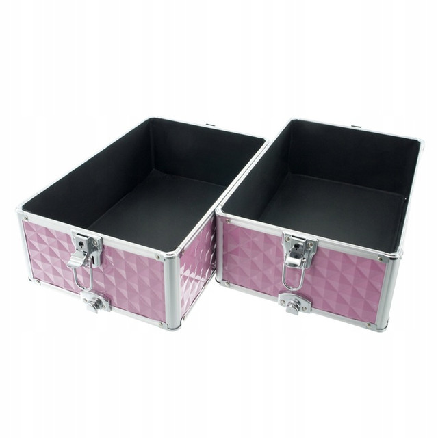 Валіза розділена на чотири частини - верхня частина відкривається зверху, має чотири шухляди для лаків для нігтів або дрібних аксесуарів, дві однакові середні частини для більших предметів і велике відділення , у якому поміститься більшість доступних манікюрних ламп і безліч інших пристроїв.