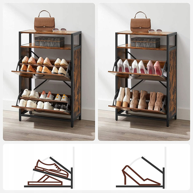 - Шкаф - полка для обуви в индустриальном, лофт, ретро и деревенском стиле.