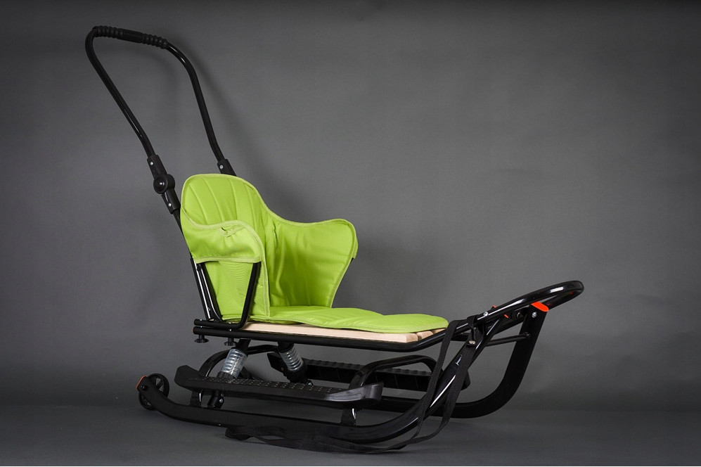 Амортизатори мають регулювання жорсткості: - спортивна функція (сидіння більш жорстке) - функція комфорт (сидіння сприйнятливе до нерівностей) Санки поставляються зі спинкою, яка кріпиться гвинтами, які входять в комплект, регульованим штовхачем (знімним), підніжками та матрацом.