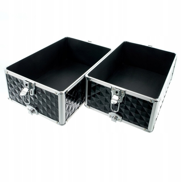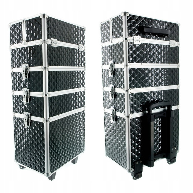 Валіза розділена на чотири частини - верхня частина відкривається зверху, має чотири шухляди для лаків для нігтів або дрібних аксесуарів, дві однакові середні частини для більших предметів і велике відділення , у якому поміститься більшість доступних манікюрних ламп і безліч інших пристроїв.