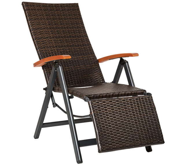 Ви шукаєте індивідуальне крісло для відпочинку з підтримкою ніг? Це зручне крісло для відпочинку виправдає ваші очікування. Воно складається й регулюється, тому його можна легко адаптувати до ваших вимог. Крісло для відпочинку з підставкою для ніг вражає не тільки своїм привабливим дизайном, що складається з поліротангової й алюмінієвої рами, але й практичними аксесуарами, як-от підлокітники та підніжки.